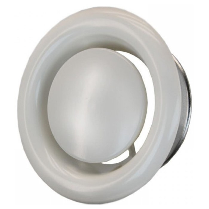 вытяжной анемостат, материал: металл, форма: круглый, тип установки: настенный/потолочный, управление: механическое, присоединительная муфта, диаметр воздуховода: 100 мм